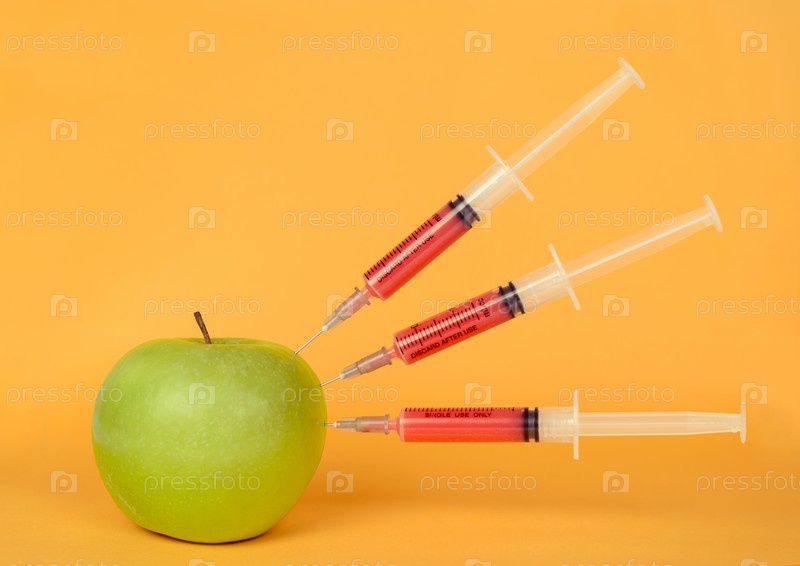 Зеленое яблоко и шприцы