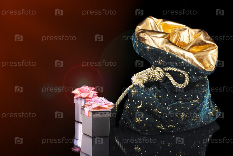 Рождественский мешок и две подарочные коробки