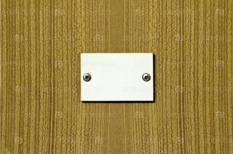 Металлическая пластина на деревянной поверхности, пустая табличка на двери