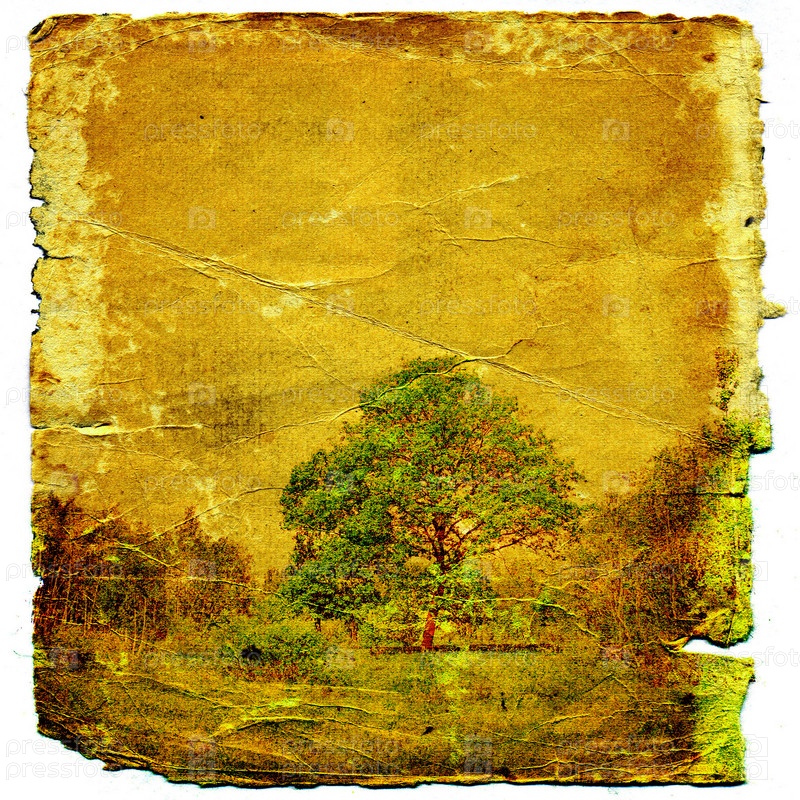 Изображение дерева на старом холсте