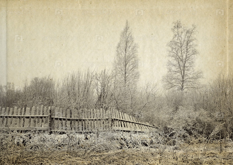 Изображение старого деревянного забора на старом холсте