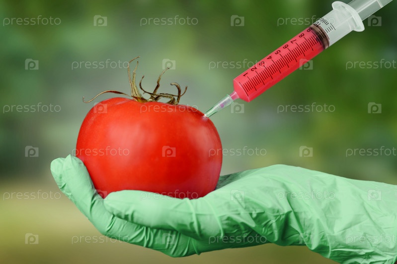 Ученый проводит опыт с помидором