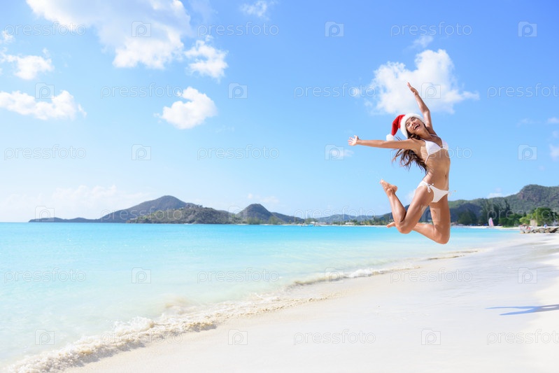 Счастливые рождественские каникулы - девушка прыжки на пляже