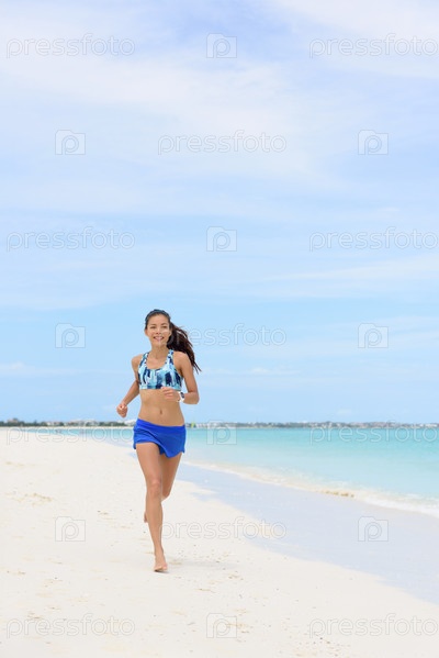 Бег на пляже - здоровый фитнес женщина жизни