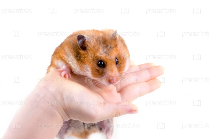 Хомяк в руке на белом фоне