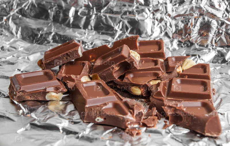 Кусочки шоколада на фольге