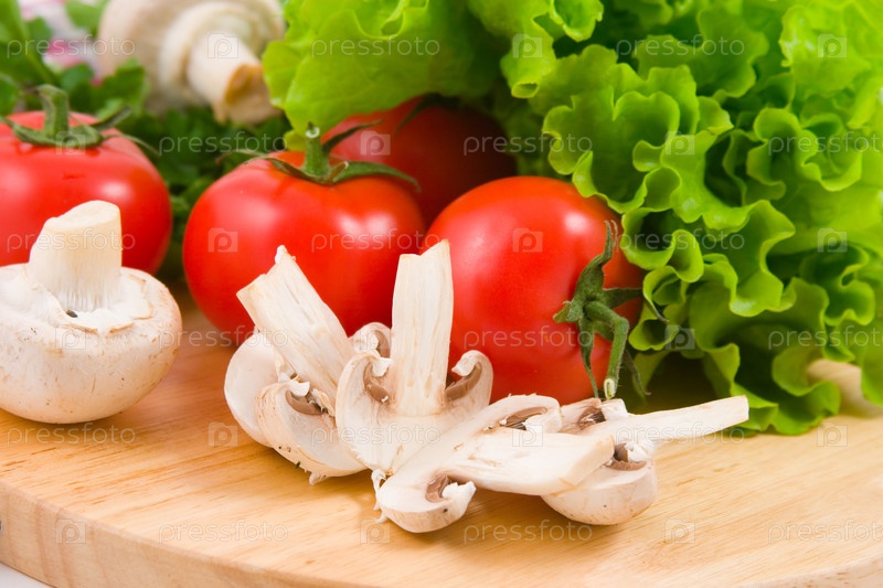 Свежие овощи для салата и грибы
