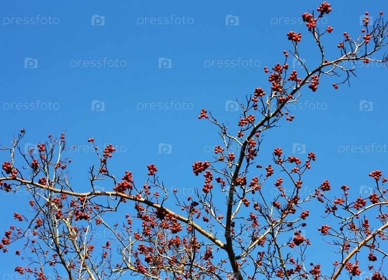 Ягоды на ветках на фоне голубого неба