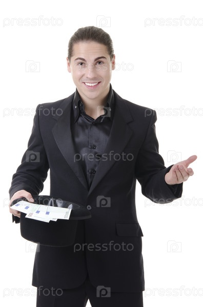 Фокусник с деньгами в цилиндре