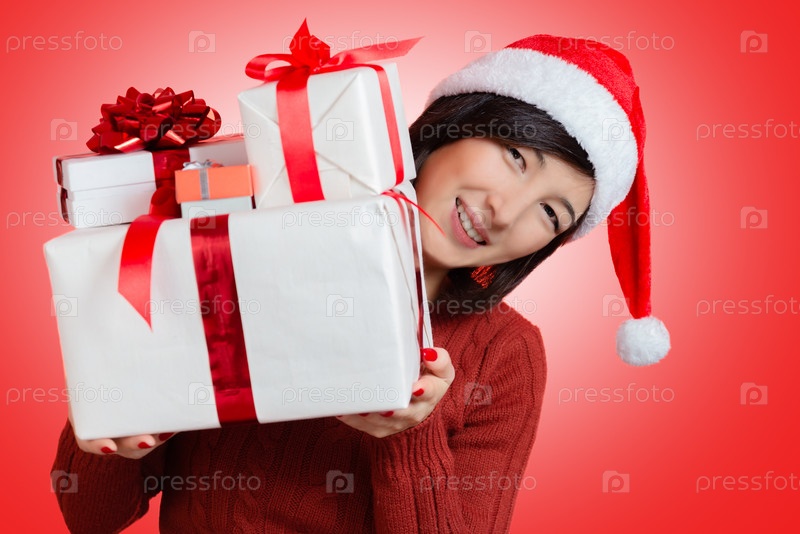 Женщина держит много подарков