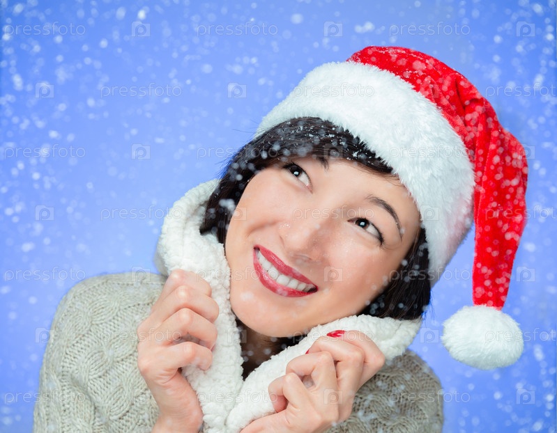 Улыбается женщина в снежную погоду