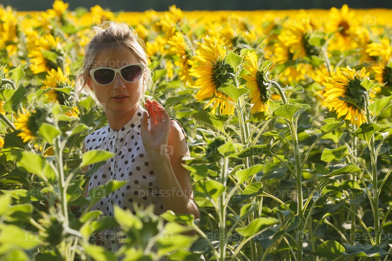 Симпатичная девушка с подсолнухами