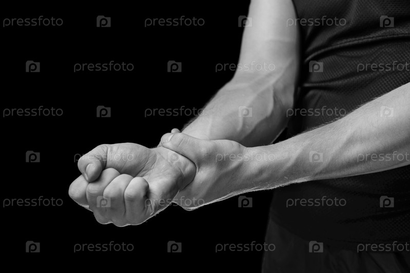 Боль в мужской запястье, монохромное изображение
