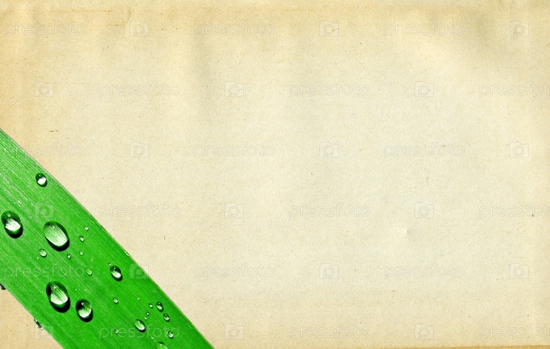 Зеленый листок на фоне старой бумаги