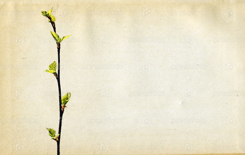 Зеленая веточка на фоне старой бумаги