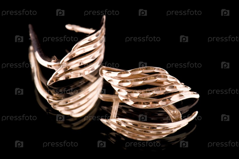 Объект на черном - Золотое ушное кольцо макро на черном