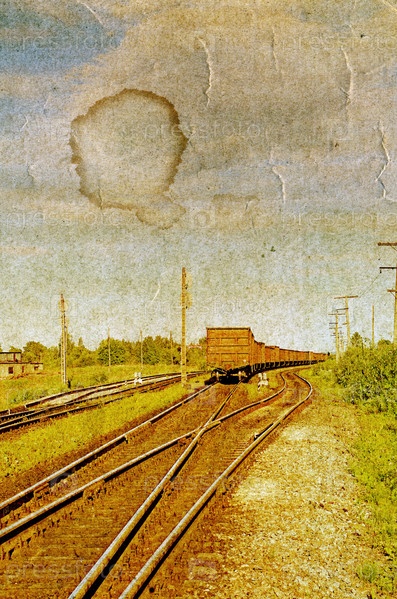 Изображение железной дороги на старом холсте