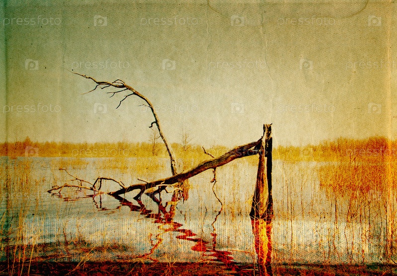 Изображение сломанного дерева на старом холсте