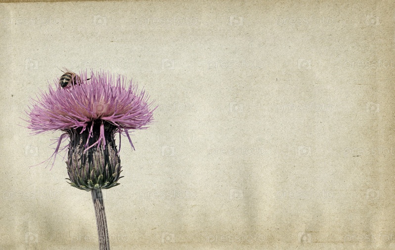Изображение пчелы на цветке на старом холсте