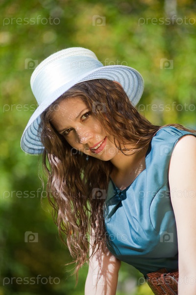 Девушка в шляпе летним днем в парке