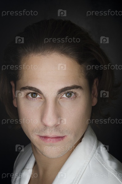 Портрет спокойного кавказского мужчины на черном фоне