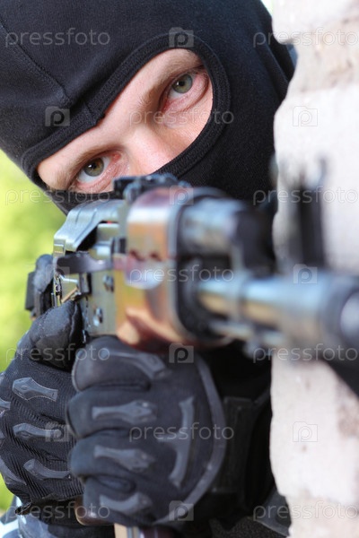 Мужчина в черной маске с автоматом