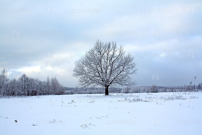 Дуб в поле зимой