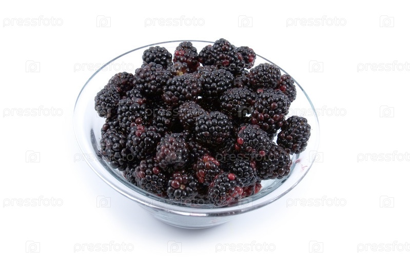 Ягоды ежевики в миске на белом фоне
