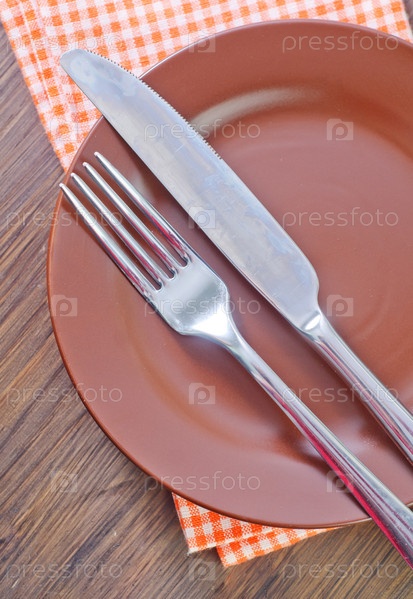 Вилка и нож на тарелке