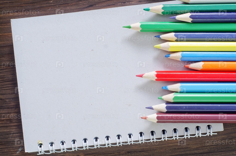 Цветные карандаши и блокнот