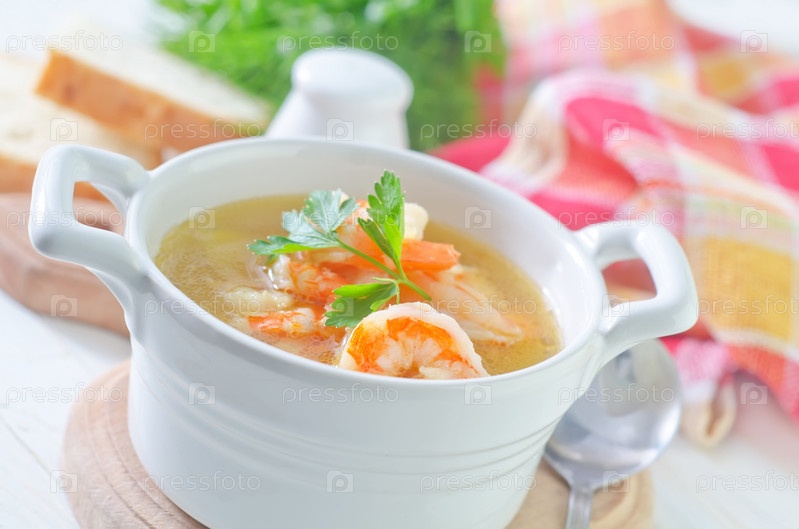 Свежий суп с курицей и креветками