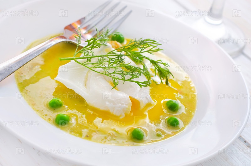 Свежий суп из зеленого горошка и яйца пашот