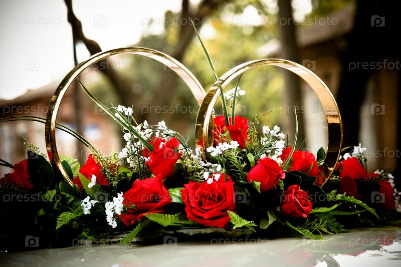 Свадебное украшение на крыше автомобиля