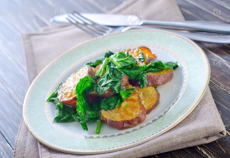 Сладкий картофель со шпинатом