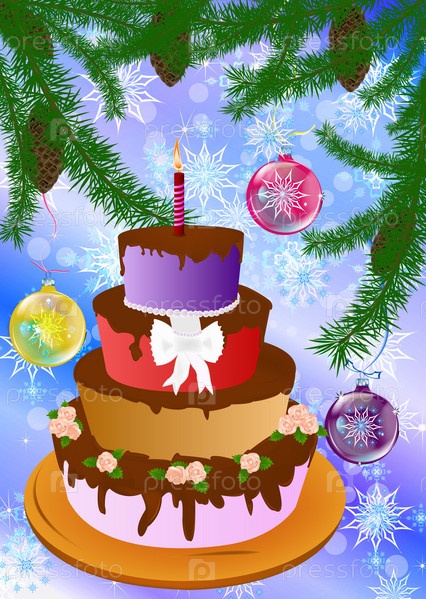 Торт на новогоднем фоне