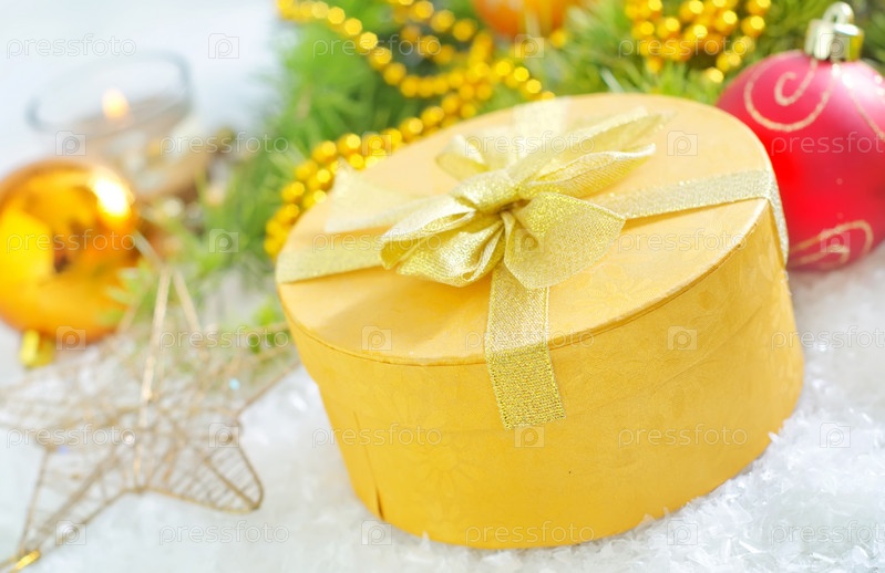 Подарок и рождественские украшения