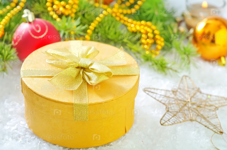 Подарок и рождественские украшения