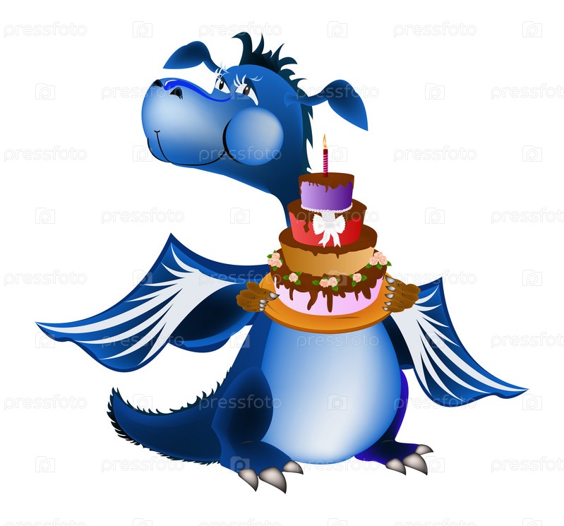 Добрый новогодний Синий Дракон с аппетитным тортиком