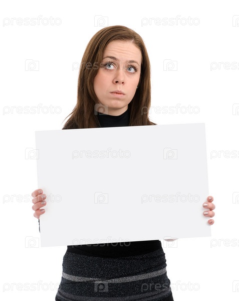 Печальная женщина с пустым листом бумаги в руках