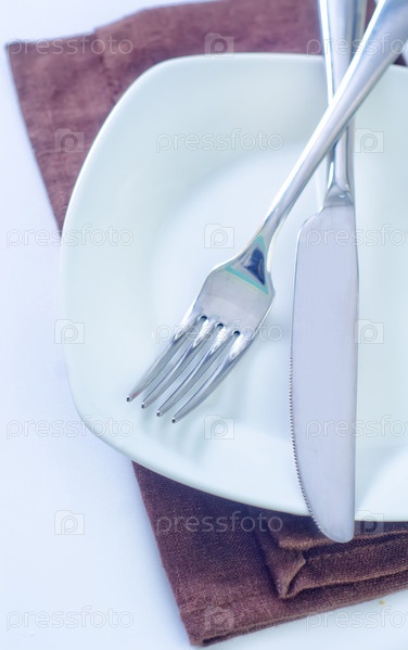 Вилка и нож на тарелке