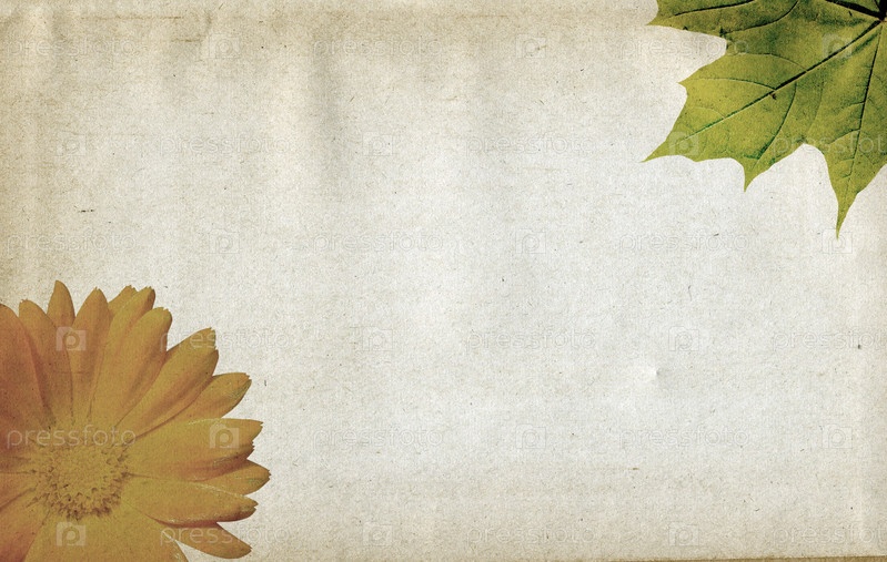 Листок и цветок на старом листе бумаги