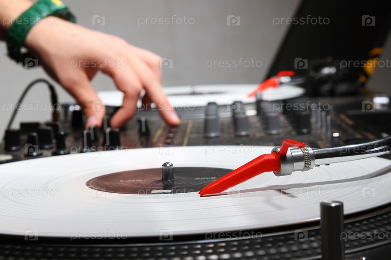 Диджей за пультом звукового оборудования