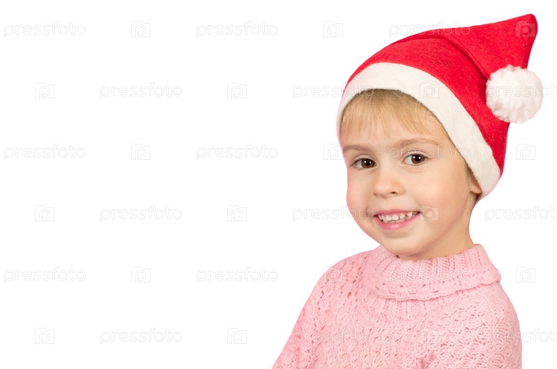 Маленькая веселая девочка в новогоднем колпаке