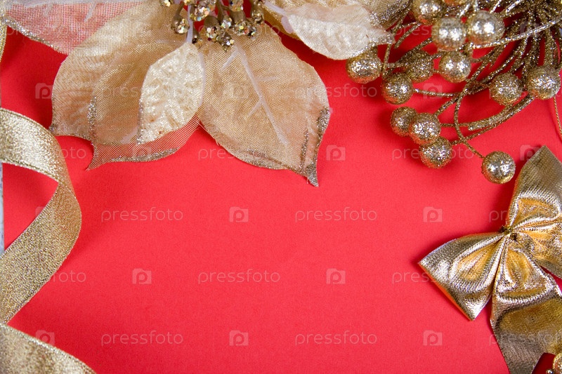 Атрибуты рождества на красном фоне