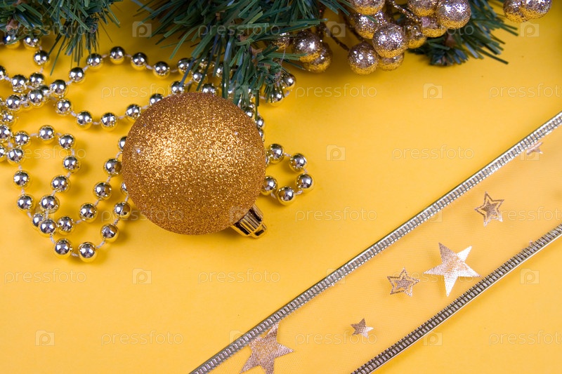 Атрибуты рождества на желтом фоне