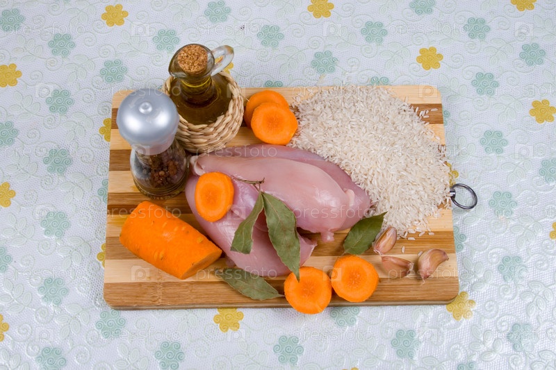 Ингредиенты для плова на доске. Кулинарный натюрморт