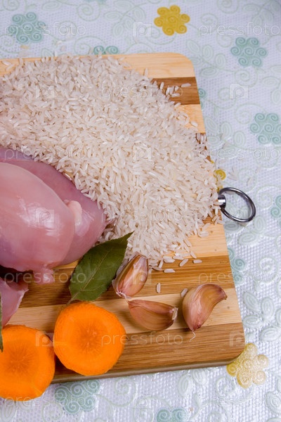 Ингредиенты для плова на доске. Кулинарный натюрморт