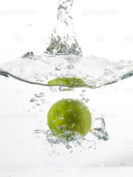 Зеленое яблоко в воде