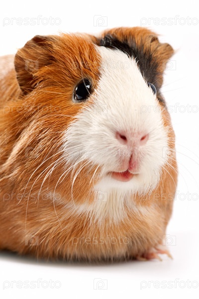 Морская свинка на белом фоне