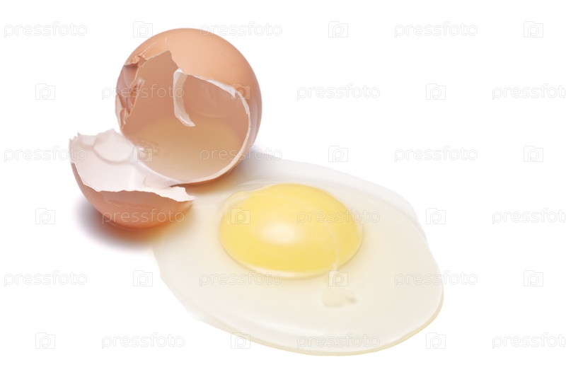 Разбитое яйцо на белом фоне
